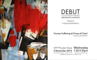 La galleria Debut Contemporary di Londra ha aperto il 1 ottobre una mostra davvero speciale con il titolo “Human Suffering at Times of Crises”curata da Samir Ceric , CO of Debut Contemporary e Barry Martin , artista che ha studiato al Goldsmiths' College of Art e all'University of London negli anni 1961-66. I suoi lavori sono presenti nelle collezioni di Tate Gallery, Science Museum, British Museum, Arts Council of England, Northern Arts Association, National Portrait Gallery, Museum of Modern Art (Paris), etc.