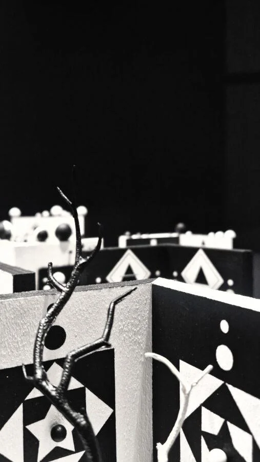 Le dodici sculture in mostra - ciascuna intitolata Luogo seguito dal numero progressivo di realizzazione - incarnano i valori numerologici che le strutturano, configurandosi come microcosmi nei quali si intrecciano rigore geometrico, visione immaginifica e tensione metafisica. Lo spazio espositivo si trasforma così in una geografia interiore da attraversare, in cui la contrapposizione tra bianco e nero diventa il principio di ricomposizione degli opposti, infondendo all’allestimento una valenza quasi cosmologica.