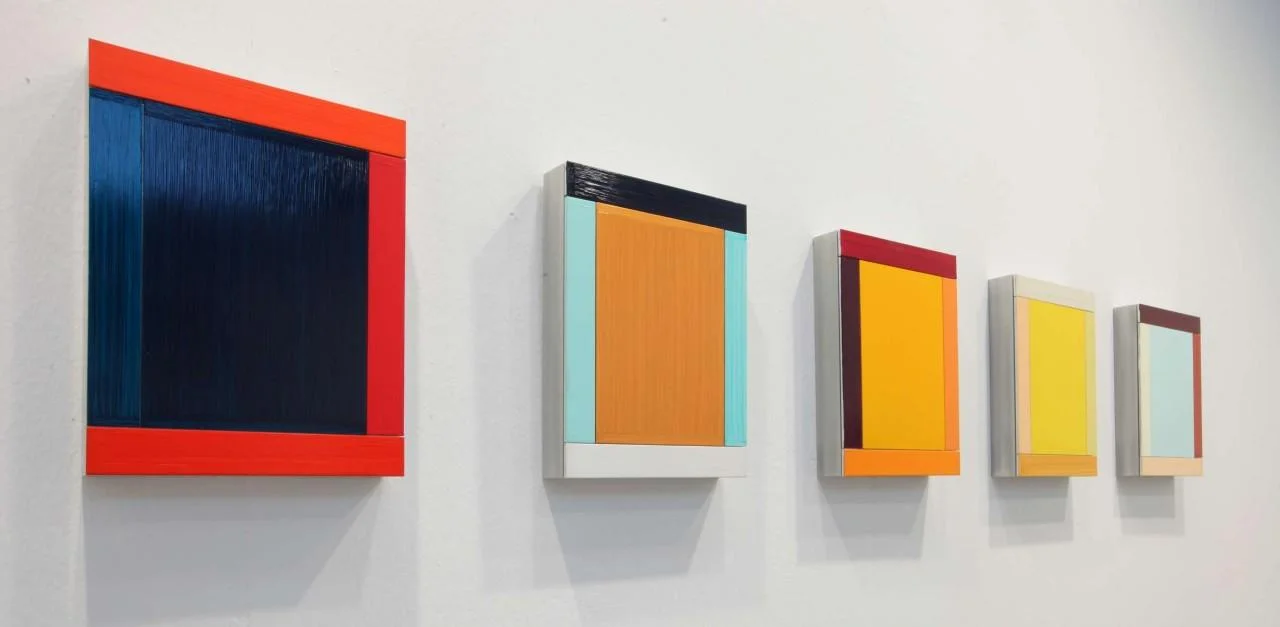 Günter Fruhtrunk e Winfred Gaul, vengono qui assunti a baluardi di un’indagine che si riallaccia alla lezione di Josef Albers, sancendo un revival della pittura astratta a partire dalla metà del secolo scorso. Gli artisti delle generazione successive, rappresentata da Ulrich Erben, Imi Knoebel, Günter Umberg, continuano quindi a interrogarsi e a reinventare le strutture geometriche, ponendosi in sfida con le leggi della monocromia. In particolare, spetta a Knoebel il compito di introdurre quel “disequilibrio tra interno ed esterno” su cui insisteranno anche i suoi successori, come nel caso di Wolfram Ullrich, il quale decentra la geometria verso il perimetro delle opere.