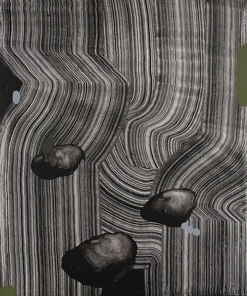 Il titolo – “Derive” – fa riferimento alla teoria geologica che spiega la formazione dei continenti a partire da un’unica massa indifferenziata. Una fonte comune è l’origine della pluralità, e parimenti ogni elemento derivato conserva traccia della propria impronta di provenienza. “Deriva”, dunque, come metafora di un percorso artistico su cui agiscono spinte personali consce ed effetti ambientali non preventivamente calcolabili, evidenziati dalle opere in esposizione, frutto di un decennio di indagine: da pezzi storici al ciclo “Germogli. E di stelle”, dalle carte della serie “Humus” alla ricerca recente, rappresentata nell’economia del progetto da una quindicina di lavori inediti.