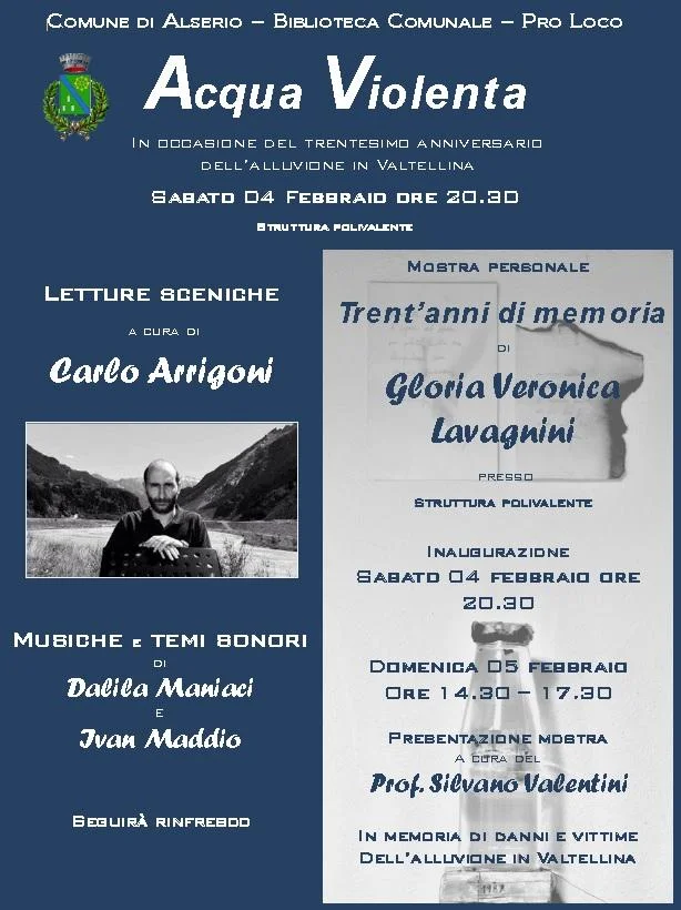 Questa mostra, curata da Gisella Colombo, nasce in memoria del 30° anniversario dalla disastrosa alluvione valtellinese.
