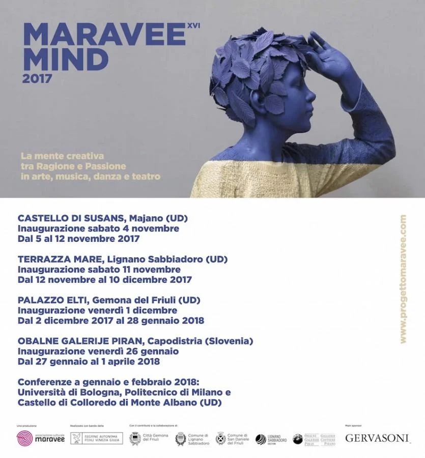 Ideato e diretto da Sabrina Zannier - con il sostegno della Regione Friuli Venezia Giulia, del main sponsor Gervasoni, dei Comuni di Gemona del Friuli e Lignano Sabbiadoro - la XVI edizione del Festival Maravee intitolata Maravee Mind ritorna più potente che mai con un corollario di proposte che, ruotando attorno al corpo centrale del progetto dedicato all’opera poliedrica di Bigas Luna, indagheranno la linea di confine tra Ragione e Passione. Un viaggio nella mente creativa di artisti visivi, danzatori, attori, musicisti e stilisti per riaffermare che raziocinio e passione sono parte di un’unica costellazione, che l’una non è il contrario dell’altra ma, piuttosto, la sua ombra.