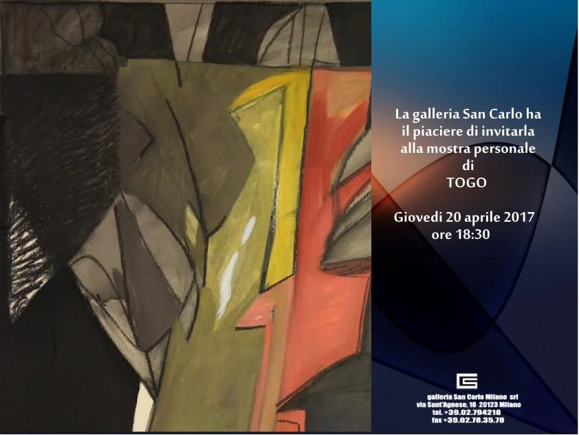Togo si esprime in una sorta di neocubismo filtrato attraverso l’astrattismo geometrico, ma anche attraverso suggestioni primitiviste perché molte sue forme evocano, anche inconsapevolmente, la primordialità di segni preistorici. Quello che più emerge nelle sue composizioni è la molteplice suddivisione della superficie. La natura, richiamata tante volte nei titoli dei quadri (Paesaggio mediterraneo, Canneto e mare, Natura viva, Onda anomala, Giardino e mare, Palma, Mareggiata), si offre al nostro sguardo in una visione problematica, come in uno specchio infranto. […]