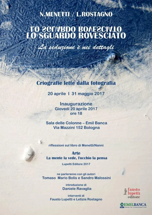 Si presentano in mostra 4 criografie selezionate di Nanni Menetti e, affiancati a quelle, i lavori fotografici di Letizia Rostagno sulle stesse criografie.
