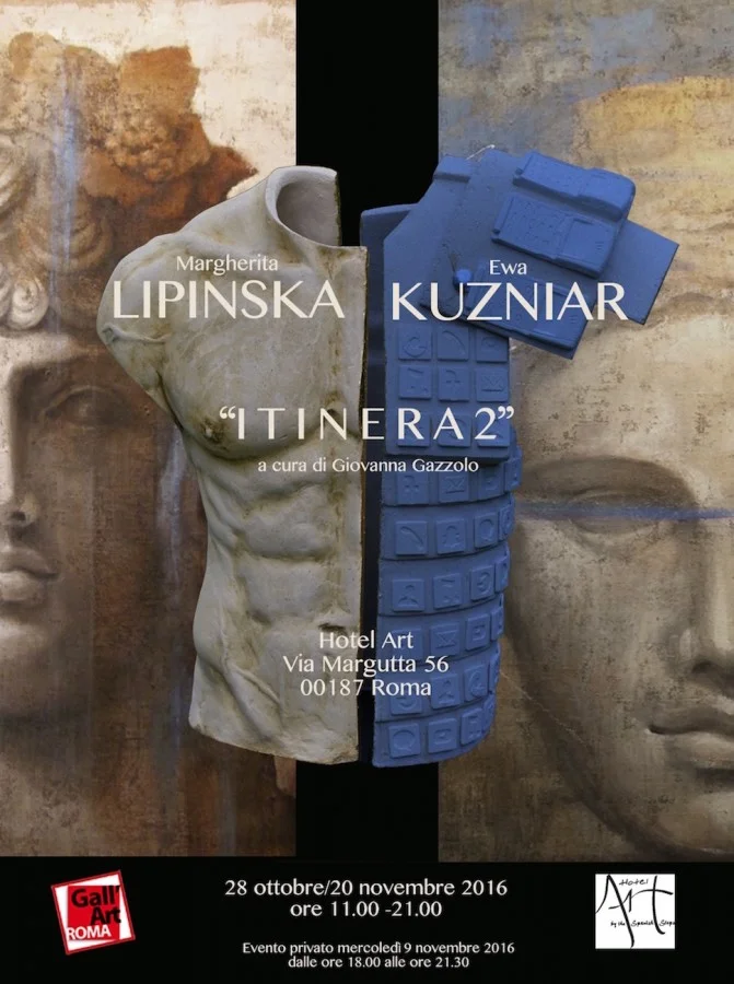 La raffinata cornice dell'Hotel Art nella storica Via Margutta in Roma ospita, dal 28 ottobre al 20 novembre 2016, i dipinti di Margherita Lipinska e le sculture di Ewa Kuzniar.