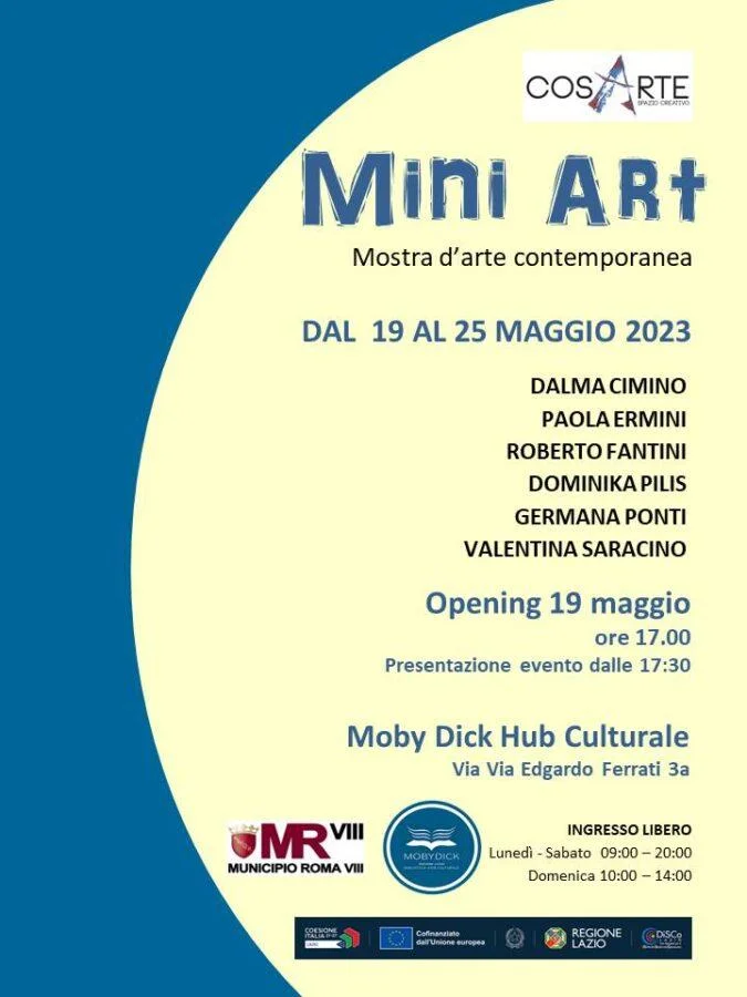 Cosarte, dal 19 maggio 2023, apre le porte all’arte nel cuore di Garbatella, attraverso l’esposizione d’arte contemporanea MINI ART, una mini collettiva con pochi artisti organizzata presso la struttura Moby Dick Biblioteca Hub Culturale, con il patrocinio del VIII Municipio.