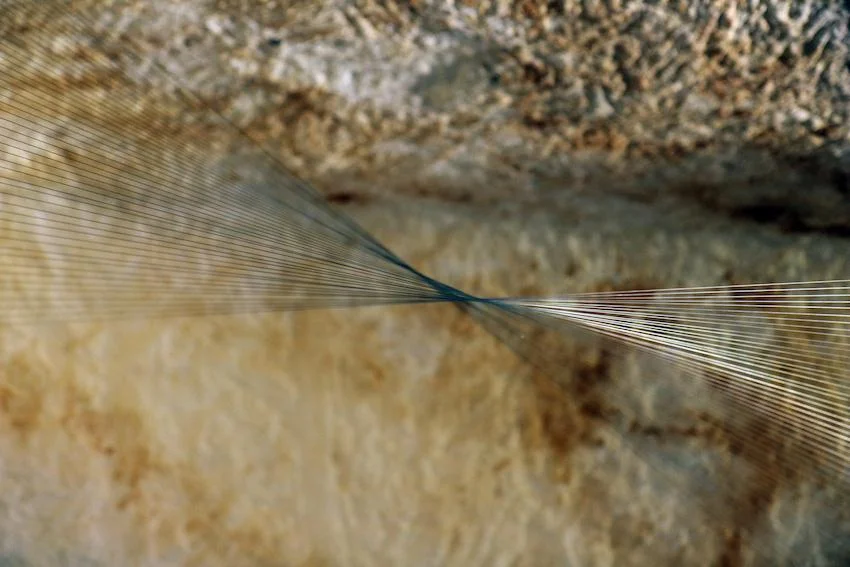 “[...] Monica Pennazzi realizza l’installazione Senso, all’interno della grotta dei giardini di Jos, con la decisa volontà di moltiplicare all’infinito il portato metaforico dell’indagine architettonica e artistica: un corpo, tessuto e attraversante, contenuto all’interno di un altro corpo -ventre scavato dall’opera dell’uomo e della natura- esperito attraverso il medium di un ulteriore corpo -il nostro- spinto oltre i limiti del sensibile e attivato in tutte le diverse modalità di attenzione. Il risultato è semplice e risiede nella vera natura dell’arte che, come affermava Maurice Merleau-Ponty, è quella di superare con un balzo qualunque forma di conoscenza che l’artista possa incontrare e di sognare un nuovo mondo nascente. Entrare nella grotta di Jos produce, dunque, un corto circuito mentale fra un incontro emotivo vissuto e una comprensione intellettuale (cit. Juhani Pallasmaa). Il percorso esplorativo avviene attraverso un corpo labile, evanescente, quasi non-corporeo che si rivela non improvvisamente e nella sua interezza ma attraverso differenti e variabili punti di osservazione visiva e uditiva. Senso è una creatura generata da proprietà solide e tangibili in un ordine di segni e volumi, fissata da principi armonici, frantumata da componenti incorporee, fluide e transitorie, influenzate dalle alterazioni ambientali. È un luogo fenomenologico scandito e modellato da eventi statici e dinamici che si modificano con il respiro, le presenze e le assenze, liberando una rarefatta aura sonante, voce viva umanizzata costitutiva di un temporaneo paesaggio sonoro all’inverso, perchè risultato di fattori non involontari ma di forme, materiali, gesti determinati dalla scelta artistica. Senso è un habitat ampliato nel quale si realizza un passaggio osmotico costante di energia e informazioni alla conquista di nuovi status e punti di equilibrio e dove la materia, materiale e immateriale, possiede quelle caratteristiche intrinseche che permettono di trasformare, convertire e codificare i moti vibratori e le onde acustiche in un continuum “dentro” e “fuori” i corpi, i territori abitati dai corpi, i luoghi-non-luoghi dimore del sogno, del desiderio, dell’ispirazione, del pensiero. I confini stabiliti dalle assertività spaziali e temporali chiamano, così, all’esplorazione dello sguardo, all’ascolto del canto delle colonne, alla figurazione nel cielo del monumento di una melodia (cit. Paul Valéry). L’artista, dunque, apre ad uno spazio di comunicazione inter-soggettivo ed instaura un dialogo non apparente, silente ma non silenzioso, tra differenti inter-corporeità che procedono per impreviste e susseguenti relazioni tra figurazioni incarnate e visioni evocate da mondi immaginati. Allora, “il contenuto e il significato dell’arte diventa epico nel senso che rappresenta una metafora vissuta dell’esistenza umana nel mondo.”(cit. Juhani Pallasmaa)