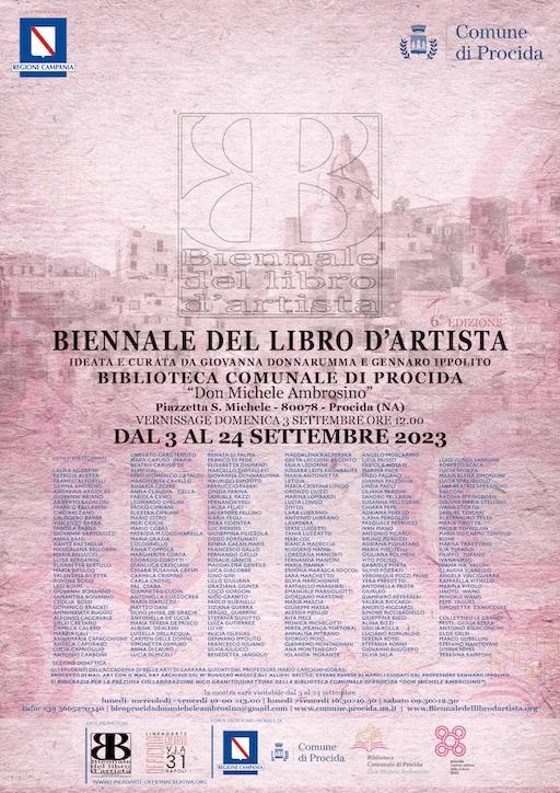 Inaugura domenica 3 settembre 2023 alle 12 presso la BIBLIOTECA COMUNALE "Don Michele Ambrosino" situata a Procida , Terra Murata, Ex Conservatorio delle Orfane, la seconda tappa della VIªedizione della Biennale del libro d’artista manifestazione ideata e Curata da Gennaro Ippolito e Giovanna Donnarumma , promossa da Lineadarte Officina Creativa.