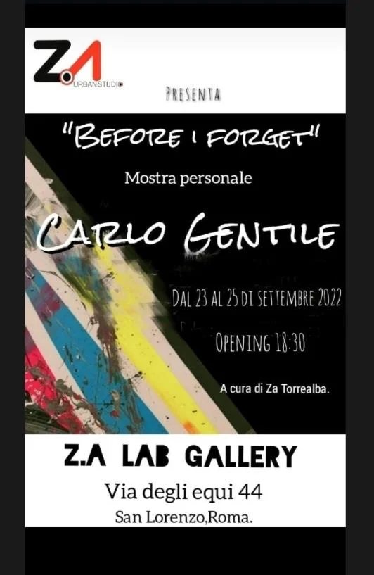 Da questo venerdi 23 al 25 di settembre sarà in mostra una speciale raccolta di più di 15 pezzi dell' pittore salernitano Carlo Gentile artista poliedrico che ci propone con su speciale stilo astratto a cura di za Torrealba al spazio spositivo @ZaLabgallery al centro di Roma al iconico quartiere di San Lorenzo , opening alle 18:00