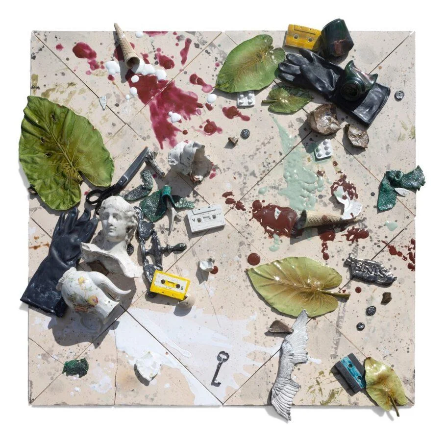 Il percorso espositivo comprende una trentina di opere, tutte realizzate dal 2017 ad oggi, secondo una tecnica originale che associa l’uso della terracotta ceramica dipinta ad objets trouvés, legno e plexiglass. Tra i lavori principali, si segnalano i “Pavimenti d’ombre”, resti di banchetti che costituiscono una tragica testimonianza di un mondo attonito, smarrito e immobile, e i “Pavimenti” neri, inghiottiti nel buio e ricoperti da un manto spesso color petrolio. Sono inoltre esposte le “Cariatidi”, moderni obelischi regolati dalla tecnica dell’accumulo, che non sfuggono al tema della vanitas, e gli inediti “Breviari”, nei quali il linguaggio si fa più rarefatto ed essenziale.