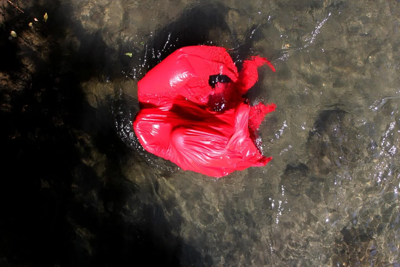 Si muove come una danza, la stoffa tra gli alberi, nel rinnovarsi delle stagioni. L’autunno carico di energia, dalla terra gonfia con i suoi venti la stoffa che si protende, come i frutti che in questo periodo cadono in terra. Una donna si muove al suo interno, crea forme, attese. Si fa albero. Il contrasto primario vibra nel bosco, il colore risuona nel silenzio di foglie. Eterna crescita, continuo ritorno, gli alberi sono memoria del mondo e delle genti.