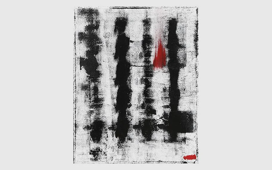 La serie diventa come un filo invisibile che avvolge e unisce le persone che hanno incrociato il suo cammino, ricordate con un'impronta rossa sulla tela.