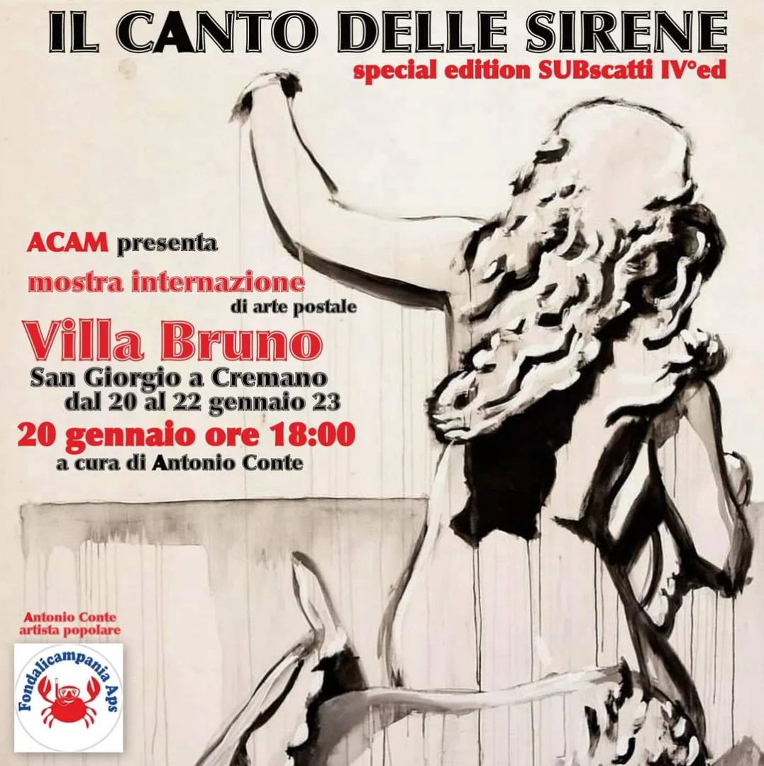 Il canto delle sirene a Villa Bruno. L’artista napoletano Antonio Conte che nel suo studio del centro storico, alle spalle di via Foria, accoglie un movimento artistico raccolto sotto la definizione di Piccola Galleria resistente, questa volta apre il suo archivio di arte postale e propone nella suggestiva sede di San Giorgio a Cremano una mostra ispirata dal mare e da personaggi mitologici come Giasone e Ulisse.