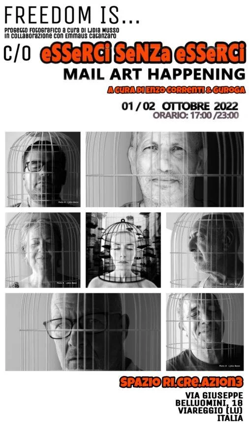 "Esserci senza esserci" presents "Freedom is ... "a photographic project on the concept of freedom, by Ljdia Musso, in collaboration with the community for the homeless Emmaus Catanzaro. An anarchist act that gives the word to the" voiceless ". The exhibition returns in double postcard-size version for the collective exhibition of Mail Art and as a photographic exhibition, 9 prints in A4 format that will constitute an exhibition in the exhibition within the event "Esserci senza esserci"
