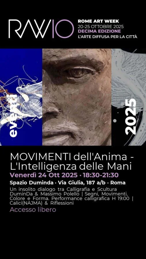 Un dialogo inedito tra Calligrafia e Scultura, Massimo Polello e DuminDa, Movimenti dell'Anima e Moods, scrittura e tridimensionale, l'Intelligenza delle Mani, at its best.