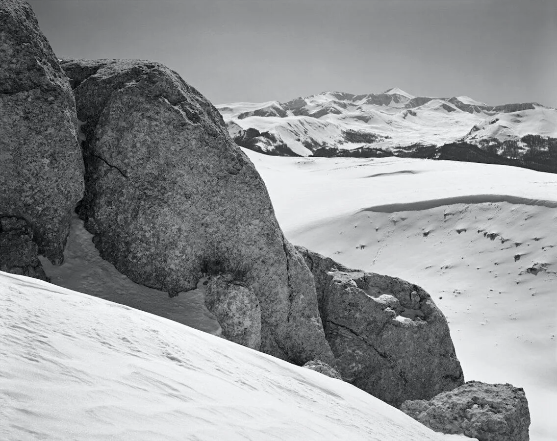La ricerca di Giulio Speranza, fotografo paesaggista di montagna, docente di banco ottico e geologo, è caratterizzata da un approccio che prevede l'utilizzo dei banchi ottici di grande formato e delle pellicole bianco e nero: iniziata nel 2018 dal racconto del Gran Sasso d’Italia e proseguita con il progetto sulla Majella. Così racconta l’autore: «Dopo il progetto fotografico sul Gran Sasso, dominato dall’estetica grandiosa del massiccio abruzzese, seguito dalla ricerca sul rapporto tra l’uomo e la montagna, così come emerso da Majella Madre, eccomi infine giunto al terzo ed ultimo capitolo della trilogia: ho deciso di concludere il racconto della mia storia d’amore con l'Appennino Abruzzese tornando alle montagne della mia infanzia, il Velino-Sirente. Tornare quindi là dove è nato tutto per cercare di trovare la sintesi tra l’uomo e la montagna, ovvero raccontare me stesso e le mie emozioni attraverso quelle che sento essere le mie montagne, dove sono le radici più profonde della passione che mi spinge a fare quello che faccio oggi. Ho deciso di chiudere il cerchio andando sempre più in profondità dentro me stesso, per tirare fuori, grazie alla fotografia, l’essenza di quello che mi emoziona dell’essere sulle montagne. In altre parole, rispondere alla fondamentale domanda: “perché amo le montagne?”»