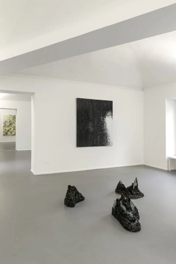 Erik Schmidt, Gregor Hildebrandt e Isa Melsheimer sono i tre vertici da cui parte e nasce non solo la figura triangolare, ma anche la mostra Berliner Symmetrie, un cosmo creato dal loro incontro, e nel quale materiali, gesti, forme, colori entrano nella galleria davidepaludetto