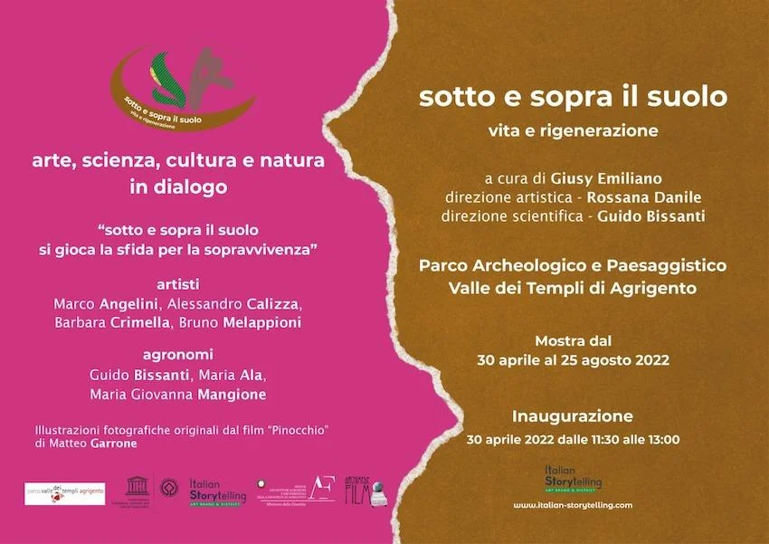Sotto e sopra il suolo, vita e rigenerazione, creato e diretto da Rossana Danile all’interno del format Italian Storytelling Art, Brand & District, intende innalzare il livello di attenzione nei confronti del suolo, della sua tutela e del nostro modus habitandi il pianeta terra, attivando un dialogo tra arte e scienza, tra agronomi e artisti. Attraverso il linguaggio visivo dell’arte contemporanea e dello storytelling multidisciplinare, il format intende promuovere gli obiettivi dell’Agenda 2050 per lo Sviluppo Sostenibile e le azioni del Parco della Valle dei Templi, in linea con quelle delle organizzazioni mondiali. Anche la FAO, ad esempio, ha intrapreso dal 2012 un percorso di sensibilizzazione sull’importanza del suolo, istituendo l’Alleanza Mondiale per il Suolo (Global Soil Partnership), finalizzata a promuoverne la gestione sostenibile con l’obiettivo, nel breve periodo, di arrivare a produrre più cibo possibile, sempre nel rispetto delle risorse naturali.