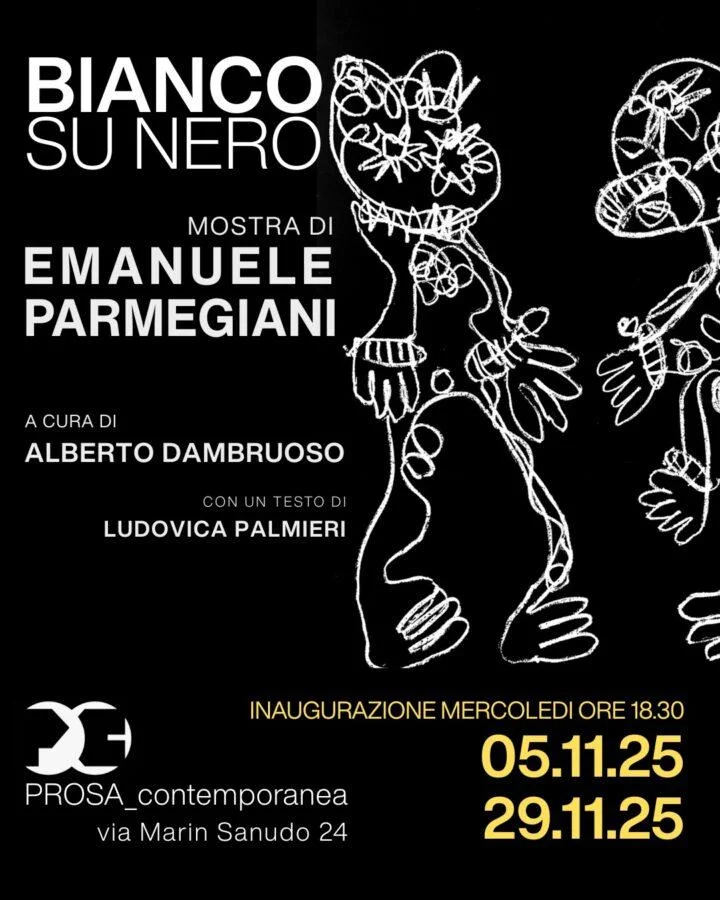 Mercoledì 5 novembre 2025 alle ore 18.30, PROSA_contemporanea presenta la mostra personale Bianco su nero di Emanuele Parmegiani a cura di Alberto Dambruoso e con un testo critico di Ludovica Palmieri: in esposizione tre grandi tele dove l’attenzione è concentrata solo sul segno che dà vita alle opere.