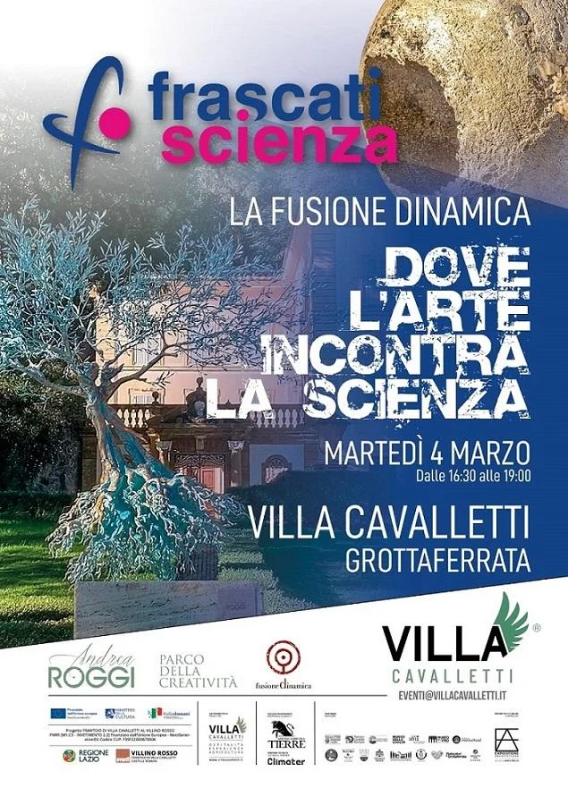 Nella monumentale cornice di Villa Cavalletti a Grottaferrata, martedì 4 marzo dalle ore 16.30, alle 19.30 si terrà un incontro tra il Maestro Andrea Roggi - nel cui studio è stata brevettata la Fusione Dinamica, utilizzata per la creazione delle sue opere d’arte - e il Professor Matteo Martini, Presidente di Frascati Scienza, moderato dalla Dottoressa Giorgia Burzachechi.