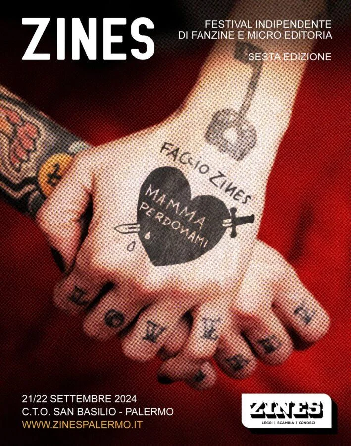 Sabato 21 e domenica 22 settembre 2024, dalle 11:00 alle 20:00, presso il Centro Sociale ExKarcere (via S. Basilio, 17 - Palermo), è organizzata la sesta edizione di Zines, due giornate di esposizione, conoscenza e scambio dedicata alle zines e all’editoria indipendente e autoprodotta.