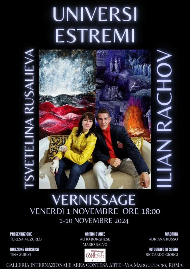 La Galleria Internazionale Area Contesa Arte, di Via Margutta 90 a Roma, ospiterà la bi-personale “UNIVERSI ESTREMI” degli artisti bulgari Ilian Rachov e Tsvetelina Rusalieva dal 1 novembre al 10 novembre 2024, con testi critici di Alfio Borghese e Mario Salvo.