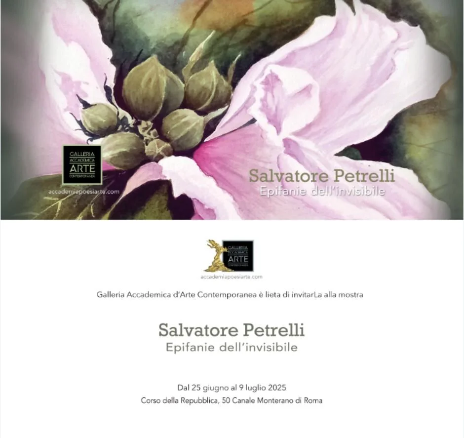 L’Accademia Internazionale di Significazione Poesia e Arte Contemporanea, in convenzione formativa con l’Università degli Studi di Roma Tre, accreditata dalla Regione Lazio, iscritta all’albo di Roma Capitale e del Comune di Canale Monterano, presidente fondatrice la prof.ssa Fulvia Minetti, vicepresidente il dott. Renato Rocchi, direttore artistico Antonino Bumbica, invita alla mostra dell’Artista Salvatore Petrelli alla Galleria Accademica d’Arte Contemporanea della Città d’Arte Canale Monterano di Roma in Corso della Repubblica n.50 dal 25 giugno al 9 luglio 2025 ore 11,00-13,00 con ingresso gratuito.
