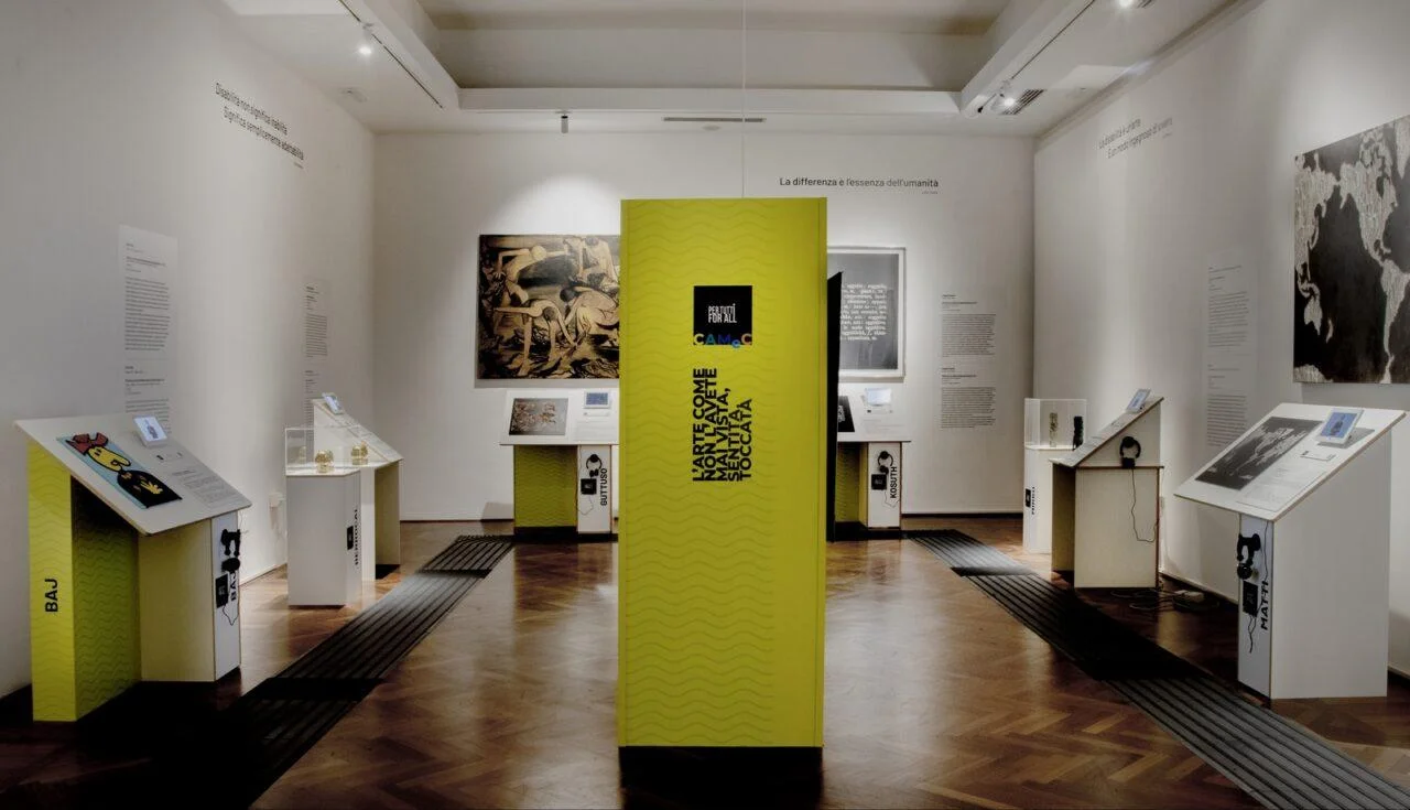 Questo spazio dedicato permanente offre, con particolare riguardo a visitatori ipovedenti, non vedenti, con sordità e con difficoltà motorie, la possibilità di incontrare e conoscere un florilegio dal patrimonio del CAMeC, grazie ad apparato didascalico diversificato ed ampliato, che abbatte le barriere percettive e sensoriali: a parete, una didascalia storico-critica bilingue (italiano e inglese) e una postazione multimediale, agevolmente fruibile anche in carrozzina, comprensiva di un ausilio tattile che riproduce il contenuto formale dell’opera, se bidimensionale, o la replica, se scultura, didascalie in braille e a rilievo, supporto audio in cuffia, supporto digitale con video in LIS (Lingua dei Segni Italiana). Le opere esposte sono 8, particolarmente adatte ad una fruizione inclusiva: esse si prestano in special modo ad una lettura tattile, agevole e gradevole per visitatori non vedenti o ipovedenti. Nel contempo, i 5 dipinti e le 3 sculture ben documentano la rilevanza delle raccolte del CAMeC, anche in ambito internazionale. L’opera più lontana nel tempo risale al 1949 e si deve a Renato Guttuso, vincitore del primo Premio Nazionale di Pittura “Golfo della Spezia”; è l’incipit del nucleo più antico delle collezioni del museo, che questa importante rassegna ha consegnato alla città. I lavori di Baj, Berrocal, Capogrossi, Dubuffet, Kosuth, Mirko appartengono alla raccolta Cozzani, silloge enciclopedica, composta con gusto raffinato e lungimirante dal collezionista spezzino. La tela di Luca Matti invece è una più recente acquisizione e risponde agli obiettivi di aggiornamento costante della collezione permanente.