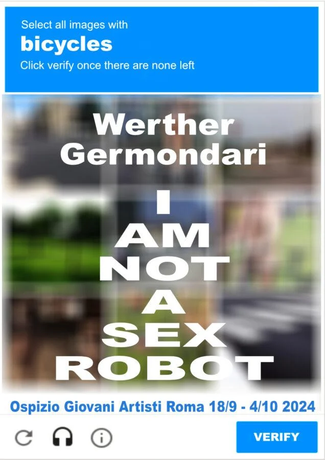 La mostra si distingue nel panorama artistico contemporaneo per la sua audace fusione tra tecnologia digitale e rappresentazione erotica. Le opere in esposizione utilizzano captcha, quei piccoli test di verifica che siamo abituati a vedere online. Il captcha, acronimo di "Completely Automated Public Turing test to tell Computers and Humans Apart", è generalmente impiegato per proteggere i siti web da accessi automatizzati. Nella mostra "I am not a Sex Robot", tuttavia, questi elementi tecnologici assumono un nuovo significato, diventando strumenti per la scoperta e l'interazione con il corpo umano in forma artistica. Werther Germondari ha sfruttato il potenziale visivo dei captcha, incorporando immagini frammentate di corpi nudi e scene erotiche all'interno delle griglie. Questi frammenti, apparentemente casuali e decontestualizzati, obbligano lo spettatore a ricostruire mentalmente l'immagine completa, un processo che richiama l'atto stesso della decodifica dei captcha. Questo atto di ricostruzione non è solo un esercizio visivo, ma un'analogia con il desiderio umano di comprensione e scoperta del corpo. Le opere esposte sollevano domande importanti sull'intimità e il voyeurismo nell'era digitale. L'atto di "risolvere" un captcha per rivelare un'immagine erotica introduce una dimensione di partecipazione attiva del visitatore, che diventa complice nella scoperta di ciò che è nascosto. Questo processo richiama il concetto di desiderio voyeuristico, dove l'atto di guardare è intrinsecamente legato all'eccitazione e alla trasgressione. L’uso dei captcha, originariamente destinati a proteggere la privacy, in questo contesto si trasforma in uno strumento per esplorare e, paradossalmente, violare quella stessa privacy. L'immagine erotica, spesso oggetto di censura e controllo, viene liberata e resa accessibile attraverso un sistema di protezione digitale, creando un cortocircuito concettuale che stimola la riflessione. Dal punto di vista estetico, le opere in mostra giocano sul contrasto tra la freddezza del codice digitale e il calore delle immagini erotiche. La frammentazione visiva dei captcha, con i loro bordi netti e le loro strutture regolari, si scontra con la fluidità e la morbidezza dei corpi rappresentati. Questo dualismo visivo crea una tensione che attira e intriga lo spettatore. D’altronde la provocazione è un ovvio elemento centrale della mostra di Germondari. Utilizzare uno strumento quotidiano e apparentemente innocuo come il captcha per rivelare contenuti erotici sfida le norme sociali e i tabù sulla rappresentazione del nudo. Questo approccio invita gli spettatori a riflettere sulle loro percezioni e pregiudizi riguardo alla sessualità e alla tecnologia. "I am not a Sex Robot'" è una mostra che non solo esplora il confine tra arte e tecnologia, ma lo spinge oltre, interrogando il ruolo dell'osservatore nella fruizione dell'arte erotica. Attraverso l'uso innovativo dei captcha, gli artisti coinvolti offrono una nuova prospettiva sulla rappresentazione del corpo umano, sfidando le convenzioni e stimolando un dialogo critico sul desiderio, la privacy e la sorveglianza nell'era digitale. (Ed Mongarri)