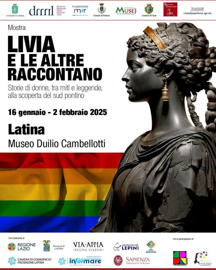 Inaugurerà il prossimo 16 gennaio 2025 nella prestigiosa sede del Museo Duilio Cambellotti di Latina la mostra “Livia e le altre raccontano storie di donne, tra miti e leggende, alla scoperta del sud pontino”; dopo il successo della prima mostra diffusa nel basso Lazio, del 2024, che ha visto coinvolti contemporaneamente i Musei Archeologici di Minturno, Formia, Sperlonga, Fondi e Priverno in una narrazione al femminile di storie antiche ma quanto mai moderne, volte a valorizzare l’ampio territorio del sud pontino.
